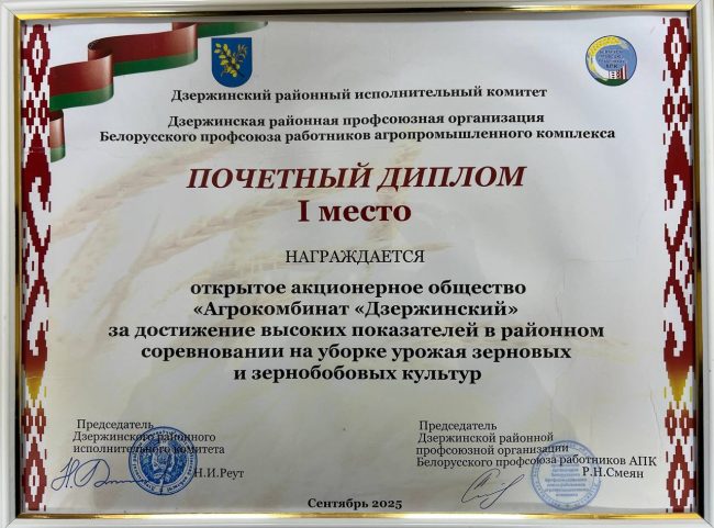 - Агрокомбинат является обладателем массы престижных наград в сфере производства