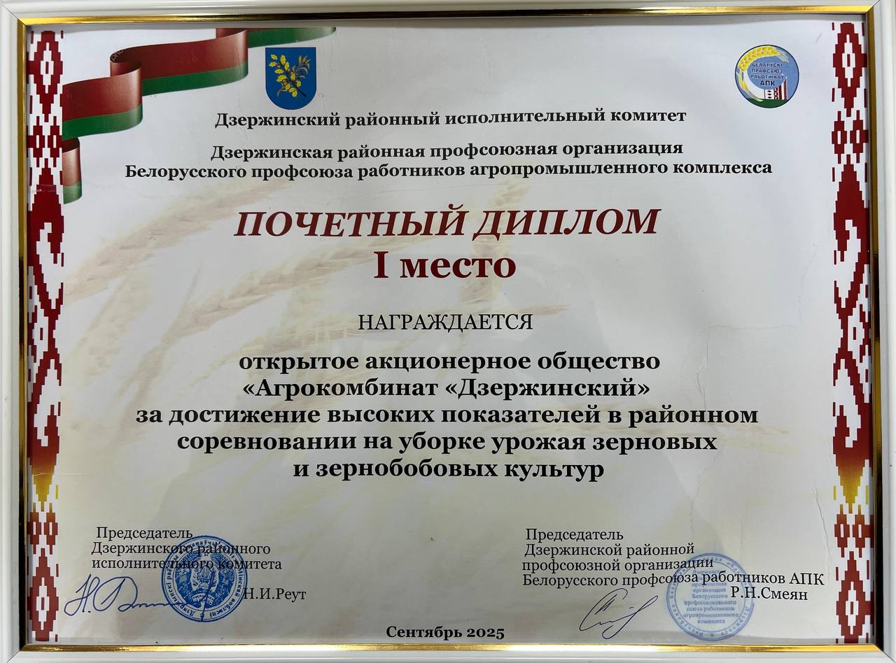 Агрокомбинат Дзержинский > НАГРАДЫ И ДИПЛОМЫ > Почетный диплом I место