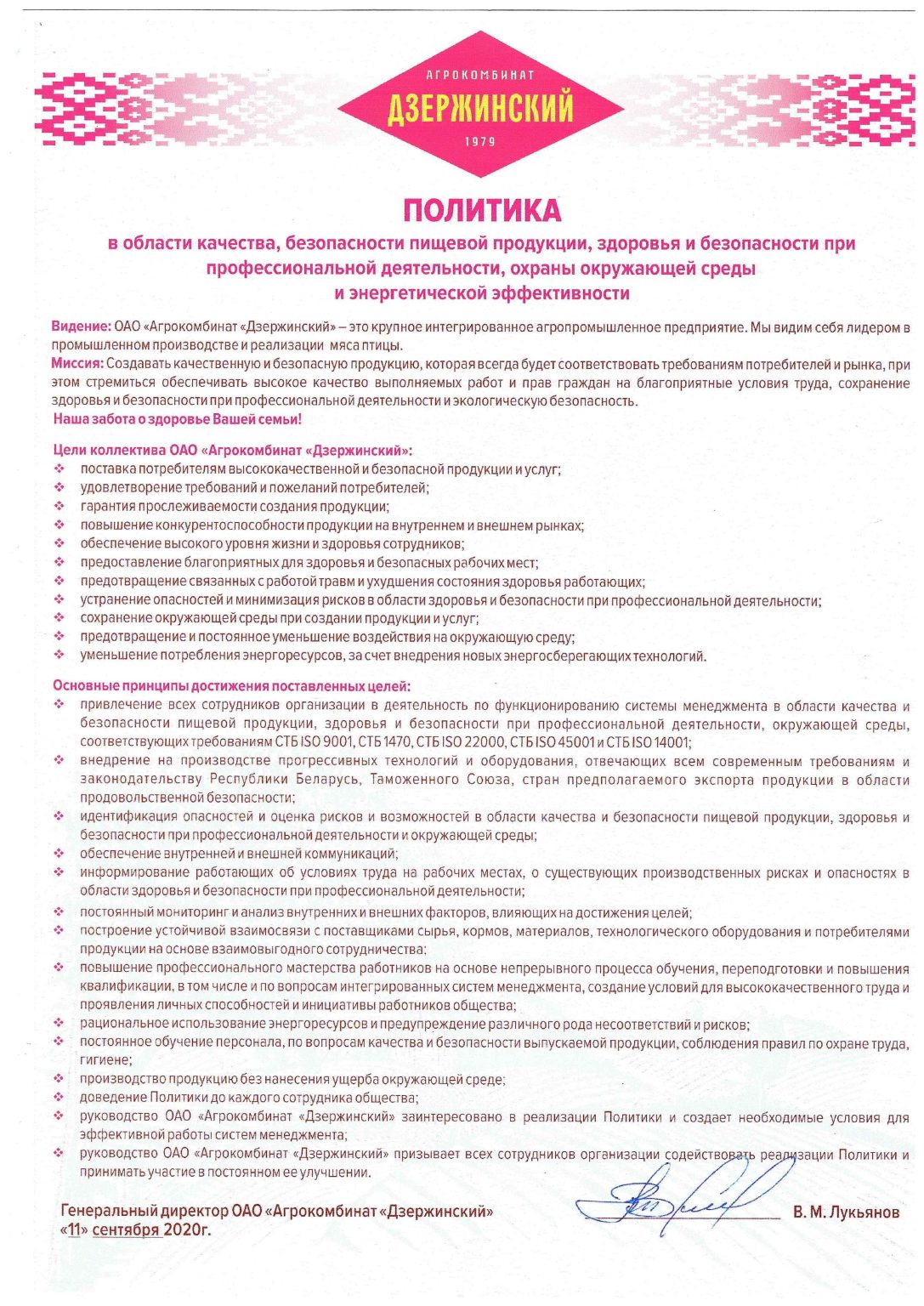 — система менеджмента здоровья и безопасности при профессиональной деятельности, которая соответствует требованиям  СТБ ISO 45001-2020 (ISO 45001:2018).
